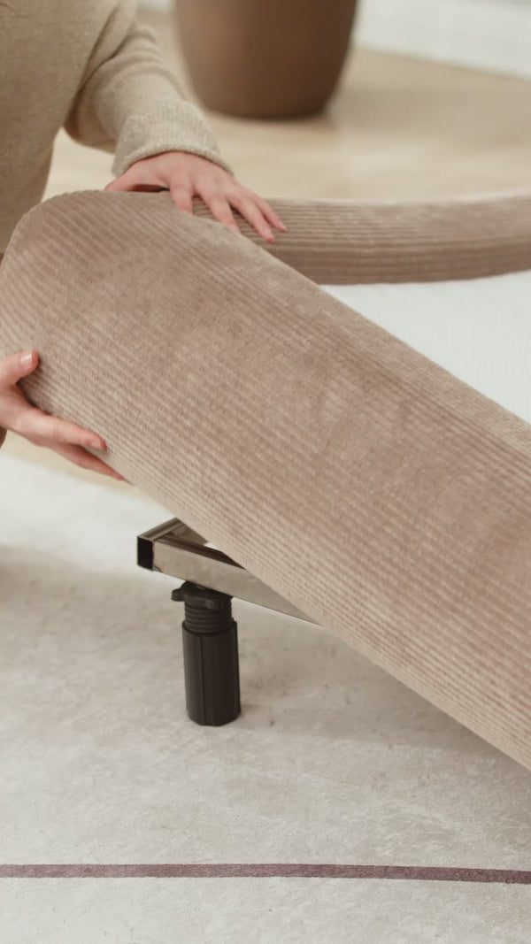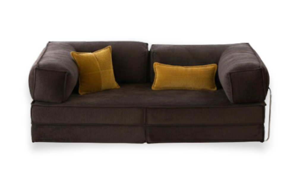 48 cm yüksekliğe sahip baza ve yatak birleşimi, sadece estetik değil, aynı zamanda ergonomik bir oturma ve yatma yüksekliği sunar.