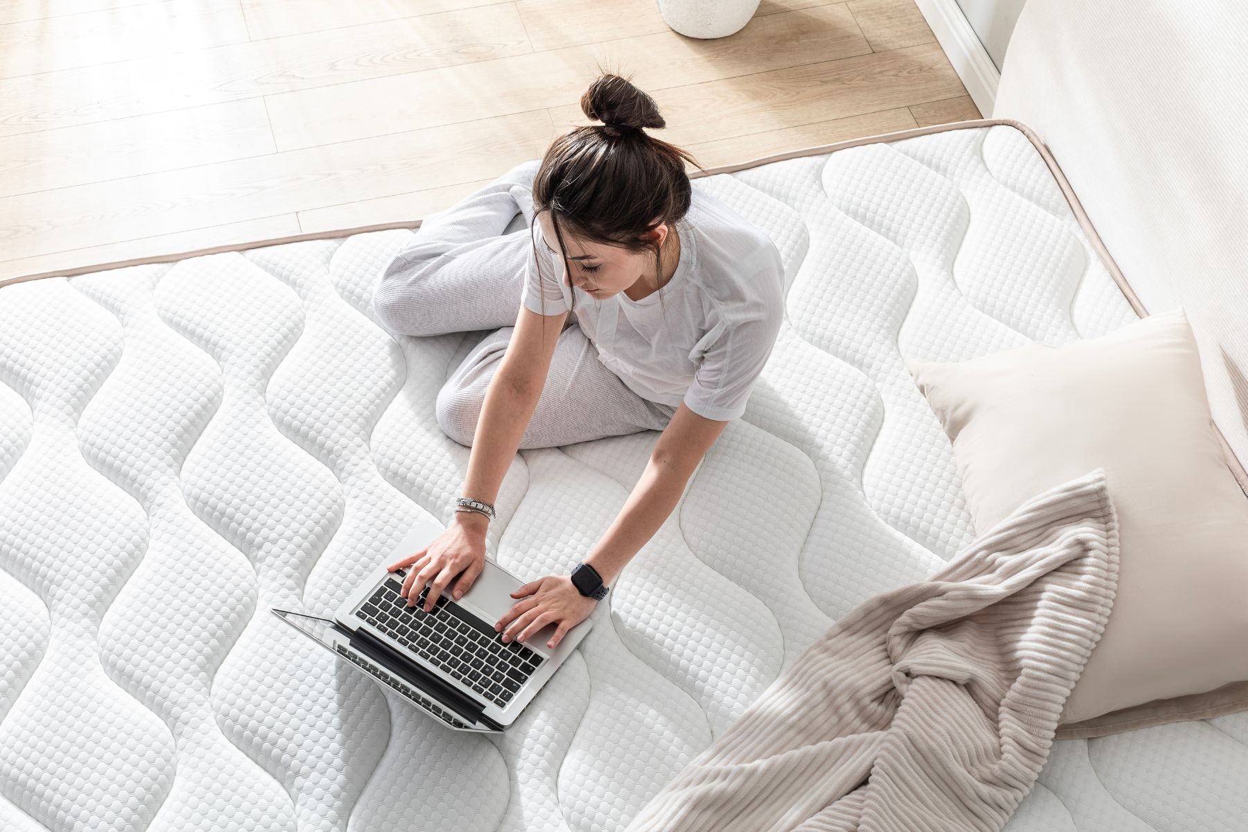 Krem rengiyle huzur veren bir uyku atmosferi